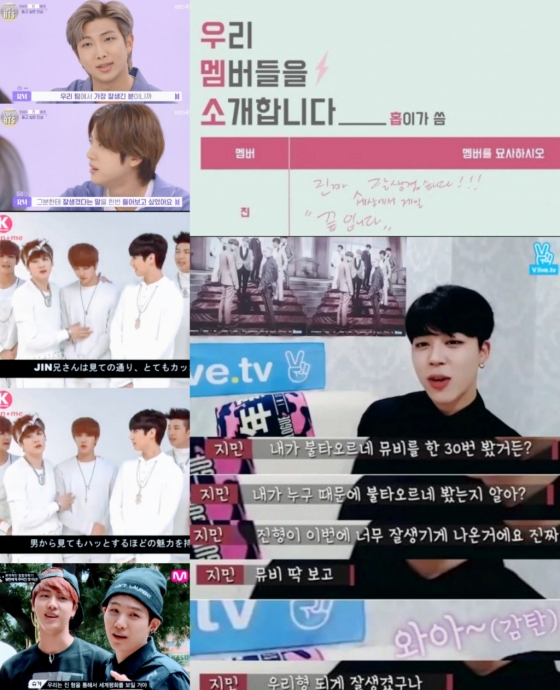 리더 RM은 지난 3월 KBS 2TV '2021 스페셜 토크쇼 - Let's BTS'에서 진을 향해 "우리 팀에서 가장 잘생긴 분이니까 그분한테 한번 잘생겼다는 말을 듣고 싶었어요"라고 했다.