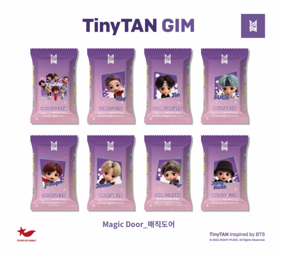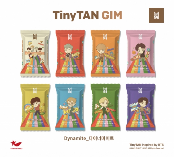 스타폭스패밀리(대표 이대희)는 HYBE(대표 박지원)와 라이선스 계약한 방탄소년단 캐릭터를 활용한 '타이니탄 김' 2가지 버전, 16종 패키지를 1일 공개했다.