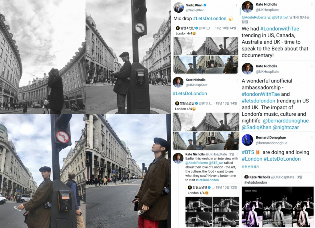 최근 영국 'BBC Radio 1'과의 'Live Lounge'(라이브 라운지) 인터뷰에서 뷔가 2018년 런던 공연 당시 템즈 강변과 리젠트 스트리트에서 찍은 사진이 송출되자 런던시장 사디크 칸(Sadiq Khan)은 'Mic drop #LetsDoLondon'이라는 문구와 함께 뷔가 런던에서 찍은 사진들을 공유했다.
