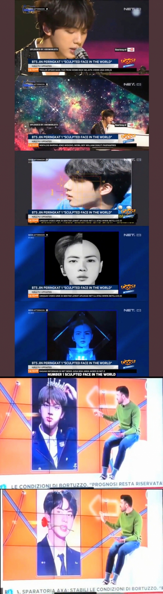 진이 세계 1위 조각미남으로 선정된 소식은 이탈리아부터 인도네시아 등의 전 세계 TV를 통해 방송되기도 했다.