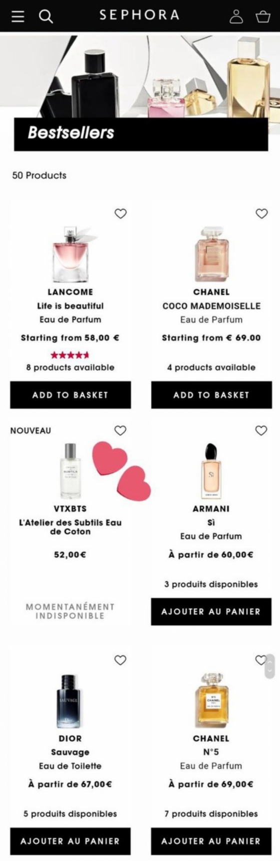 진의 향수가 세포라의 탑 50위 중 15번째로 아르마니와 디올 제품과 함께 진열된 것.