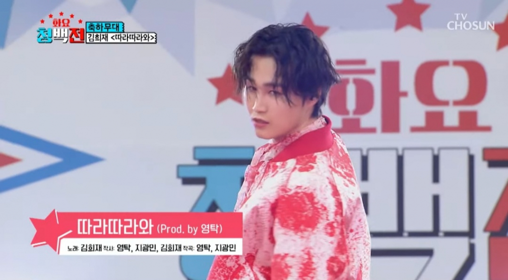 영상에는 4월 27일 방송된 TV조선 '화요청백전'에서 김희재가 '따라따라와' 무대를 선보이는 모습이 담겼다.