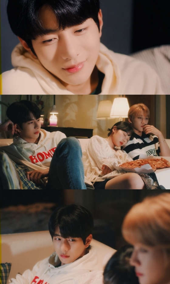 '싱잉 인 더 레인' 뮤직비디오는 최보민과 홍주찬, 여주인공이 한데 모여 잠을 청하는 나른한 분위기로 시작됐다. 이어 세 사람이 함께 영화를 보거나 사진을 찍는 등 행복한 장면이 그려졌다.