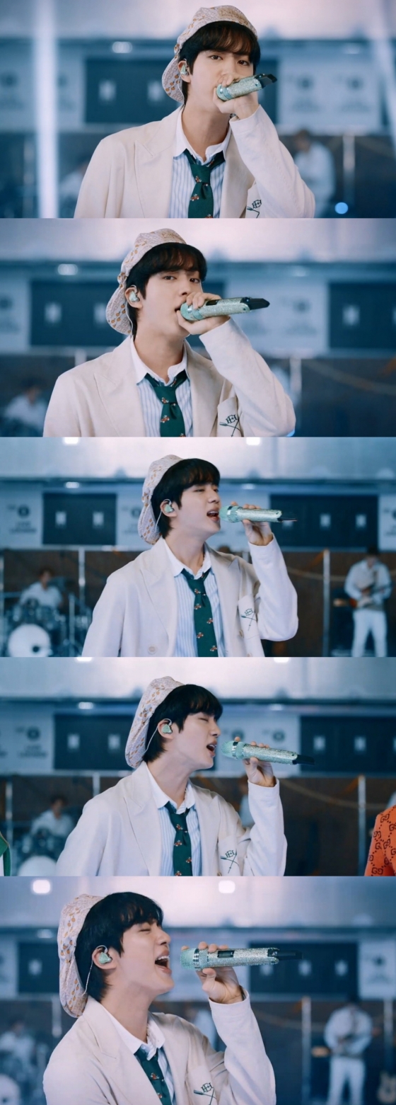 방탄소년단(BTS) 진이 뛰어난 가창력과 청초하면서도 매혹적인 비주얼로 전 세계 팬들을 사로잡았다.