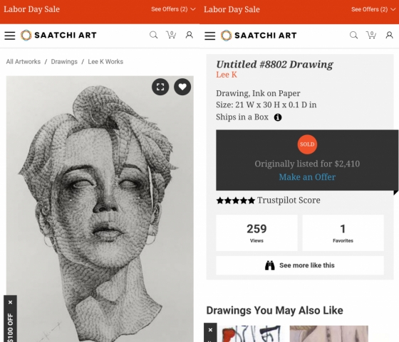 이번에 품절된 작품은 2019년 작 #8802 판화로 Lee. K 작가가 영국 런던의 폴드 갤러리(FOLD Gallery) 그룹 전시회에 출품한 작품이다.