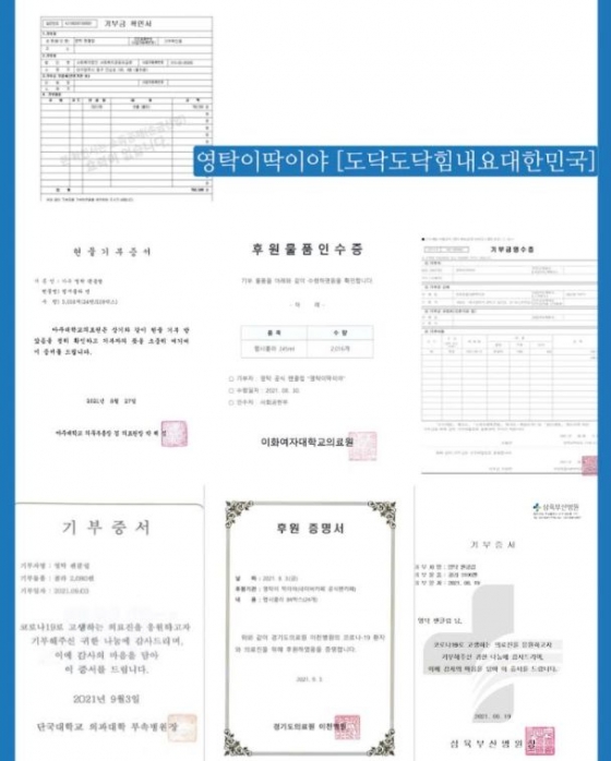 또 "7주차에는 서울 이화 의료원, 이천 경기 의료원, 충남 단국대병원 의료진들을 비롯하여 서울 광진구 보건소 방역관계자님들께 감사의 마음을 전했다"며 "또 강원도 화천 군부대와 경기도 용인 군부대, 제주 해양경찰서 의무 경찰관님들께도 진심어린 감사의 마음을 전했다"고 밝혔다.