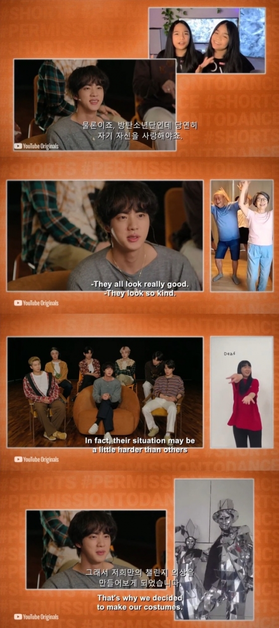 방탄소년단(BTS) 진이 전 세계 팬들의 '퍼미션 투 댄스' 챌린지에 감동하며 팬들이 자신들의 큰 힘이 된다며 팬들의 힘이 되어드리고 싶다고 밝혔다.