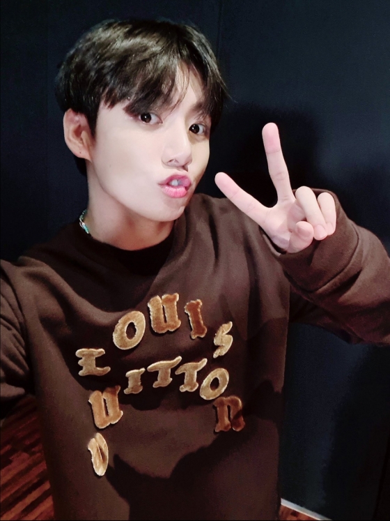 이날 정국은 맨투맨을 입고 풋풋하고 사랑스러운 소년미를 풍기며 청량하면서 잘생쁨한 비주얼도 뽐냈다.