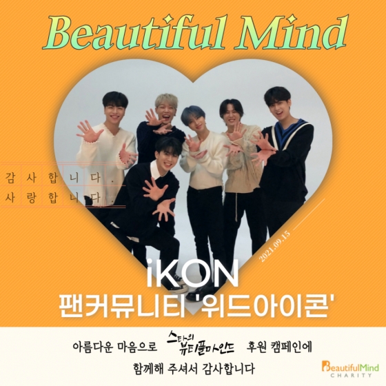 사단법인 뷰티플마인드(이사장 김성환)는 아이콘 데뷔 6주념을 기념해 팬커뮤니티 '위드아이콘'이 뷰티플마인드가 전개하는 '스타의 뷰티플마인드'를 통해 후원금 273만원을 전달했다고 15일 밝혔다.