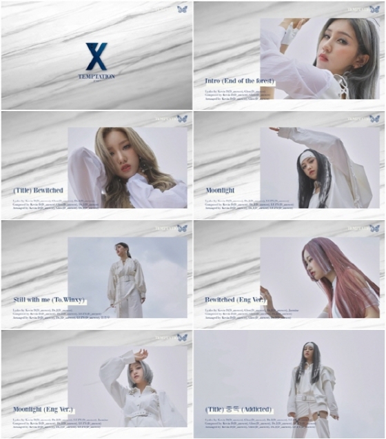 공개된 영상에는 더블 타이틀곡 'Bewitched'와 '중독(Addicted)'을 비롯해 'Intro (End of the forest), 'Moonlight', 'Still with me (To. Winxy)', 'Bewitched(Eng Ver.)', 'Moonlight(Eng Ver.)' 등 마녀에게 중독되어 집어 삼켜지는 세계관을 녹여낸 매력적인 총 7개의 수록곡이 담겨 있어 벌서부터 완곡에 대한 K-POP 팬들의 궁금증을 자극한다.