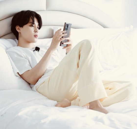 이날 방송에서 지민은 화이트 반팔 셔츠, 연노랑 바지의 편안한 차림으로 하얀 침구속 CF 촬영을 연출하듯 자체 화보 분위기를 뿜어내며 비주얼부터 힐링을 선사했다.