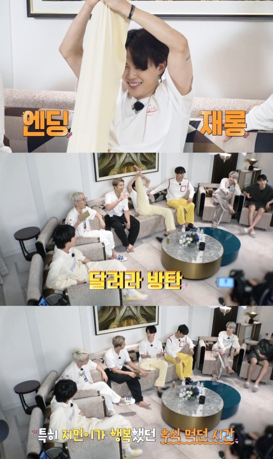 호캉스 속 달방 머니 한도를 맞추기 위해 메뉴를 주문하던 지민은 음식은 갈비살 짜파구리 하나만 주문후 멤버들과 함께 하기 위한 보드게임을 선택, 평소 멤버 사랑을 드러냈다.