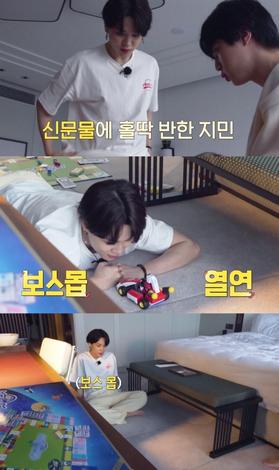 멤버들과 보드게임을 하기위해 셋팅까지 해둔 지민은 게임 놀이에 최선을 다해 호응, 최고의 놀이 파트너로써 함께 하는 것에 의미를 두며 그저 행복해 하는 모습으로 팬들에게 무한 힐링을 안겼다.