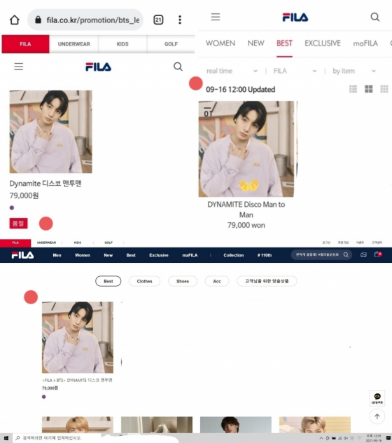 팬들은 "정국이 휠라 빛의 속도로 사라짐" "정국이 맨투맨 언제 누가 다 샀냐?" "정국이 옷도 품절...포카도 안녕ㅜㅜ" "정구기 맨투맨 겟하신 분 천운을 타고 나심" "역시 정국 효과~박수 챱챱" "꾹이가 또?!" 등 뜨거운 반응을 나타냈다.