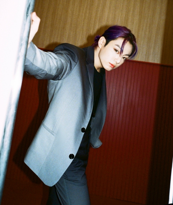해당 사진 속 정국은 핀스트라이프가 돋보이는 광택 소재의 깔끔한 블랙 수트를 근육으로 다져진 피지컬과 작은 얼굴, 긴 기럭지의 우월한 비율로 완벽하게 소화했다.
