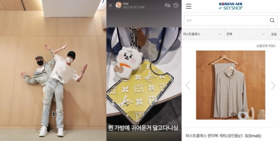 또 제이홉과 엑스자 형태로 교차한 자세의 사진을 올린 후, '죄홉이랑 커플 위아래입음. 다녀올게용하트'라는 글을 남기고 바로 사진의 댓글에 '내가 선물한 제이홉 후드(돈은 제이홉이 냄)'이라고 달아 팬들을 한바탕 웃음 속에 머물게 했다.