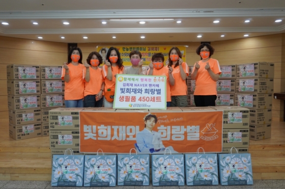 김희재 팬카페 '빛희재와 희랑별'은 부산광역시 남구 이기대공원로 용호종합사회복지관을 찾아샴푸, 비누, 치약 등으로 구성된 720만원 상당 생필품 세트 450개를 기부했다.