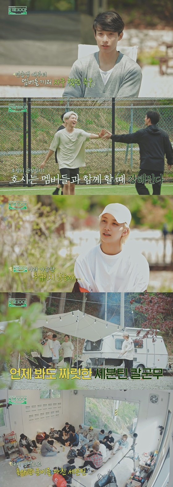 지난 27일 밤 방송된 JTBC '인더숲 세븐틴 편'(In the SOOP SEVENTEEN ver.) 마지막 회에서는 '인더숲'에서의 마지막 날을 맞이한 세븐틴이 숲에서만 볼 수 있는 그림 같은 풍경을 감상하며 그동안의 추억을 되새기는 모습이 그려졌다.