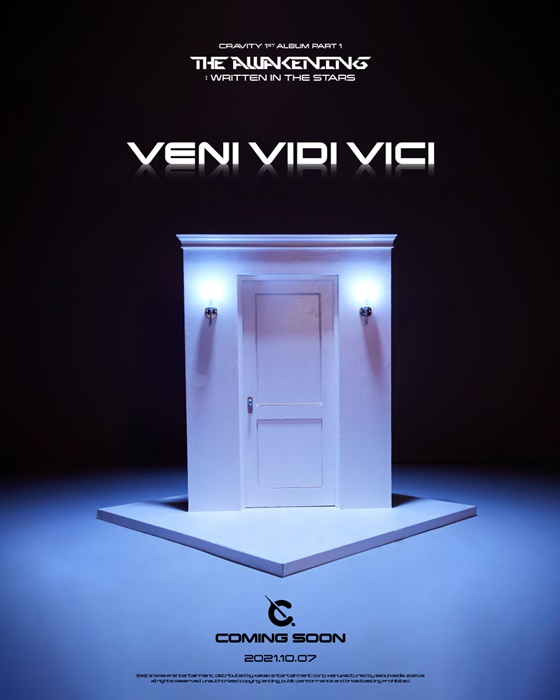 공개된 커밍순 이미지 역시 궁금증을 자극한다. '2021.10.07'이라는 날짜는 물론, '왔노라, 보았노라, 이겼노라'라는 의미를 담은 제목처럼 새하얀 문 너머 또 한 번 펼쳐질 크래비티의 세계에 기대가 모아지고 있다.