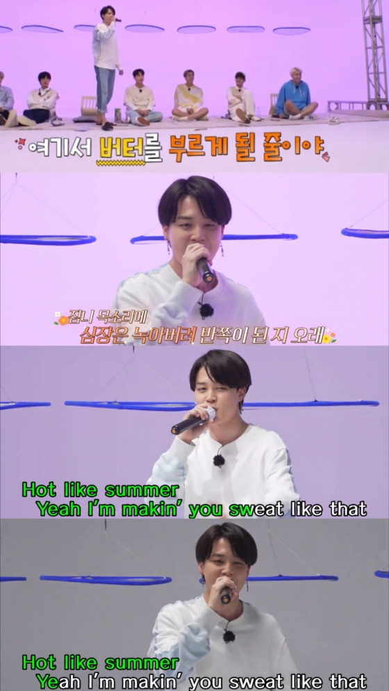 팀의 리드보컬로 다양한 음색과 음역대, 유니크한 지민만의 보컬력으로 팬들의 '솔로버전 버터 소원성취'를 부르며 귀를 사로잡았다.