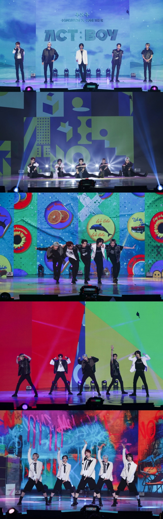 투모로우바이투게더는 'Poppin' Star', 'Our Summer', '그냥 괴물을 살려두면 안 되는 걸까'에 이어 파워풀한 '9와 4분의 3 승강장에서 너를 기다려(Run Away)' 무대로 분위기를 고조시켰다. 또 멤버들은 'No Rules'와 함께 감미로운 '20cm', '샴푸의 요정', 귀엽고 익살스런 'Cat & Dog', 'Angel Or Devil'로 분위기를 전환했다. 이날 '소악행' 무대도 최초로 공개됐다.