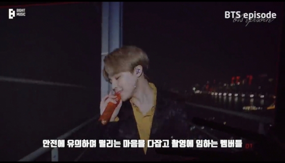 평소 "높은 곳은 엘리베이터만 타도 무섭다"라고 말했던 지민은 고소공포증이 있어 고층에서 진행된 촬영에 무척 긴장된 모습을 보였지만 촬영이 시작되자 마자 전혀 긴장감없는 눈빛과 모션으로 전환, 좌중을 압도하는 카리스마까지 뿜어내며 라이브와 퍼포먼스를 완벽하게 해내 감탄케했다.