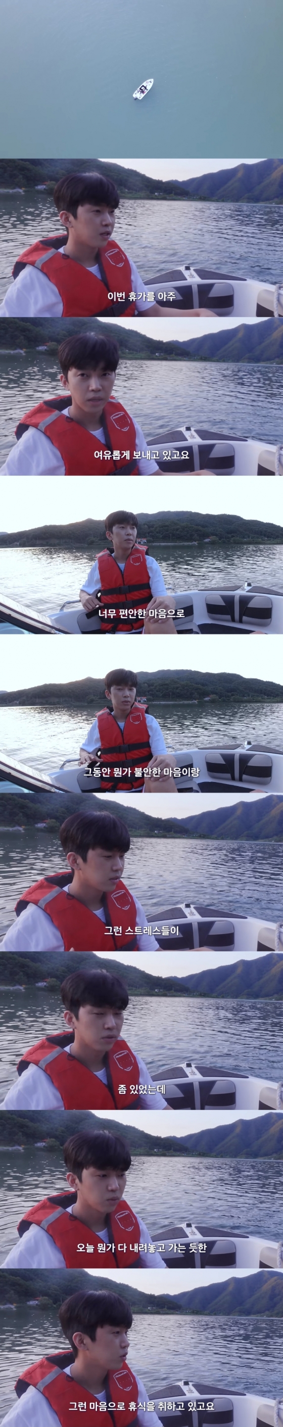 임영웅은 "이번 휴가를 아주 여유롭게 보내고 있다"며 "너무 편안한 마음으로 그동안 뭔가 불안한 마음이랑 그런 스트레스들이 좀 있었는데 오늘 뭔가 다 내려놓고 가는 듯한 그런 마음으로 휴식을 취하고 있다"고 했다.