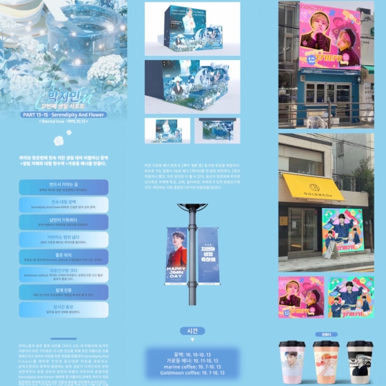 오는 10월 13일 지민의 생일을 맞아 전세계적 다양한 생일 축하 이벤트가 이어지는 가운데 소속사 맞은편 시야가 확보된 곳에 지민의 생일을 테마로 가든 형식의 거대한 꽃벽이 세워진다.