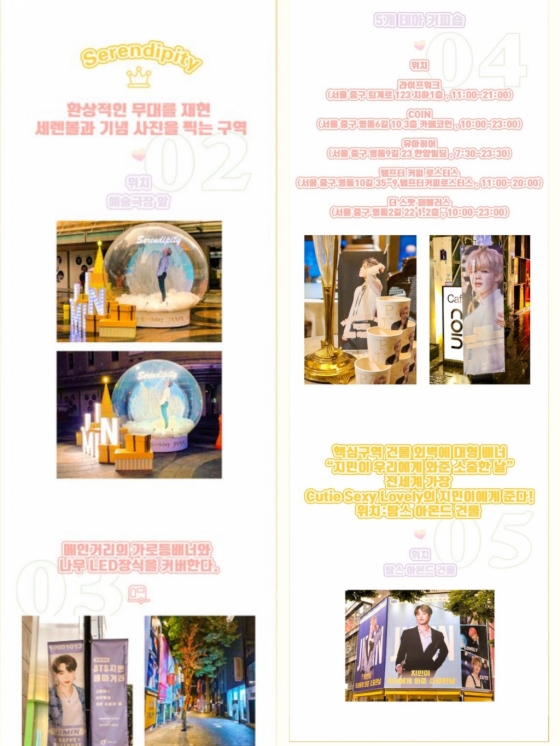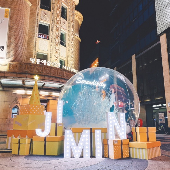 특히 명동 한복판에 설치된 지민의 무대를 재현한 '세렌디피티 스노우 볼'과 포토존을 설치, 아름다운 세렌볼은 높은 퀄리티와 정교함에 팬들 뿐만 아니라 일반인들에게도 폭발적 반응을 얻었다.
