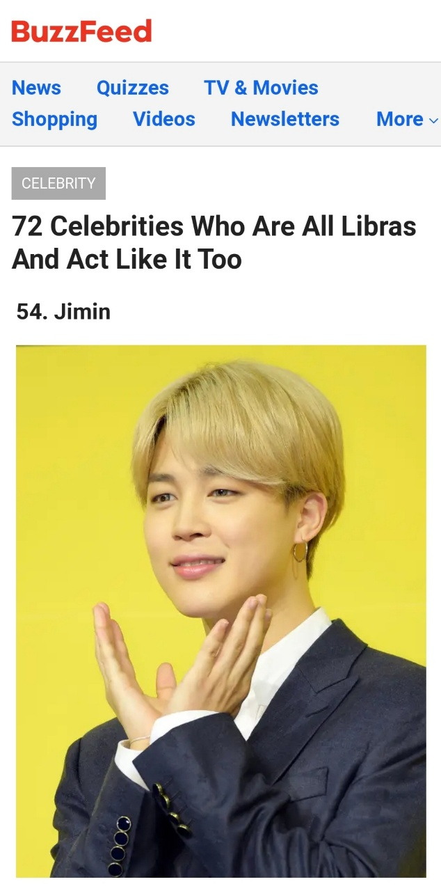 방탄소년단(BTS) 지민이 세계에서 가장 유명한 천칭자리 연예인에 선정돼 글로벌 명성을 빛냈다.