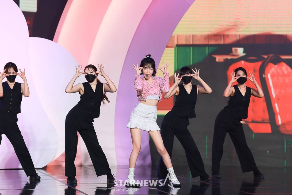 조유리는 "처음 곡을 듣고 동화같다는 생각을 했다. 보컬이나 안무적으로 동화같은 분위기를 잘 표현하려 노력했다"며 "그 부분을 집중해서 봐주셨으면 좋겠다"고 강조했다.
