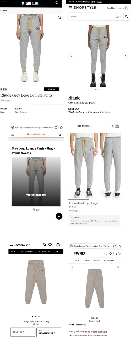 또한 지민이 착용한 '루드(Rhude)' 브랜드의 트레이닝 팬츠는 '밀라노스타일', '샵스타일', 'AccuWeather', 'NORDSTROM', 'REVOLVE', 'FWRD' 등 총 6개의 웹사이트에서 품절을 기록했다.