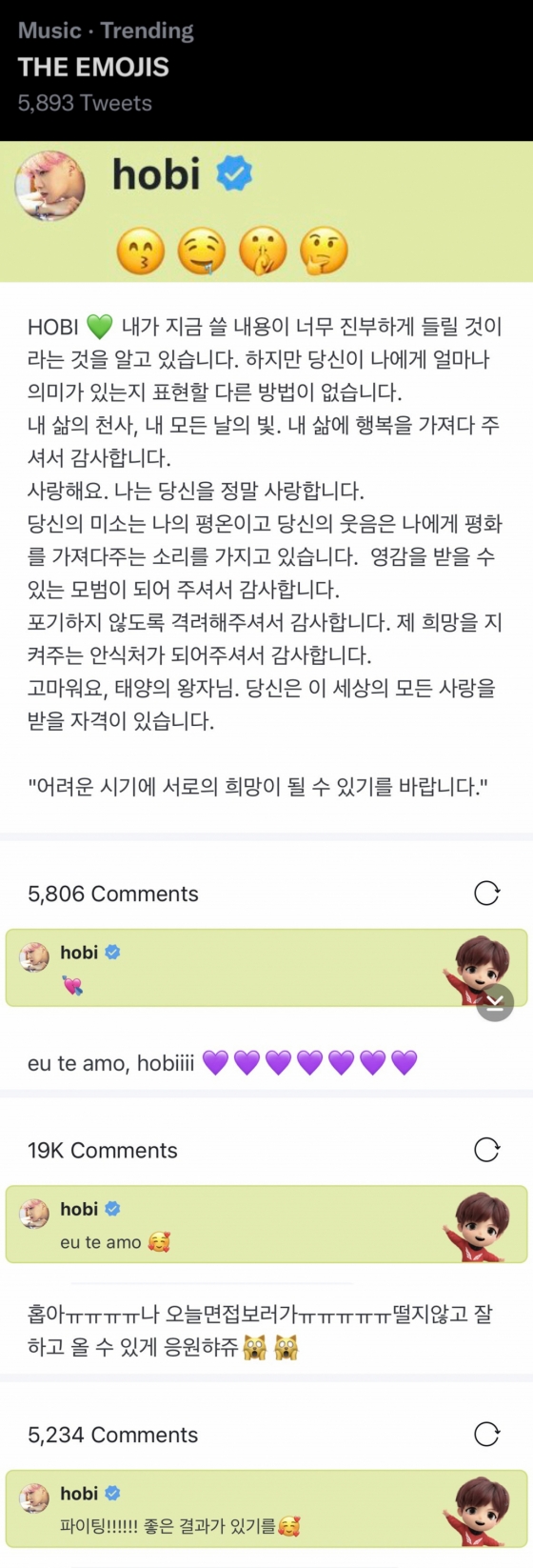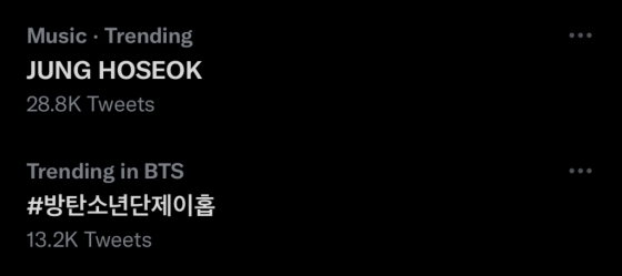 'JUNGHOSEOK', '#방탄소년단제이홉', 'hobi', 'hoseok'이 트위터 트렌드에 오르며 열띤 반응을 이끌어냈다.