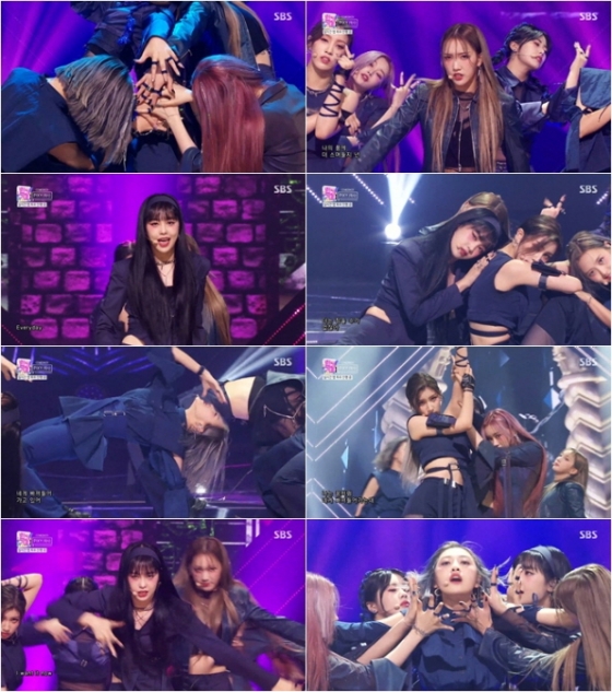 지난 10일 방송된 SBS '인기가요'에서는 픽시(엘라, 샛별, 수아, 디아, 로라, 다정)가 두 번째 미니앨범 'TEMPTATION'의 타이틀곡 '중독(Addicted)' 무대를 꾸몄다.