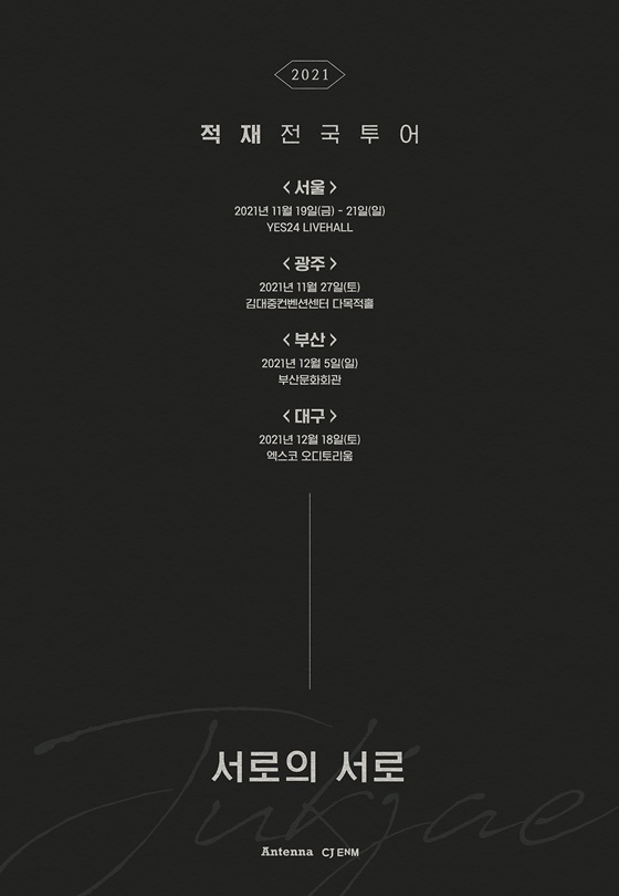 소속사 안테나는 지난 11일 공식 SNS를 통해 적재 2021 전국투어 콘서트 '서로의 서로'의 티저 포스터를 선보였다.
