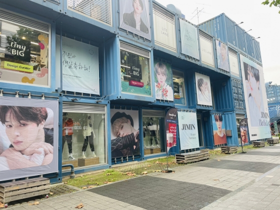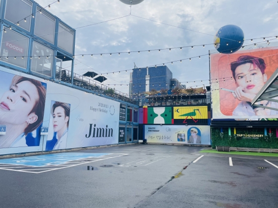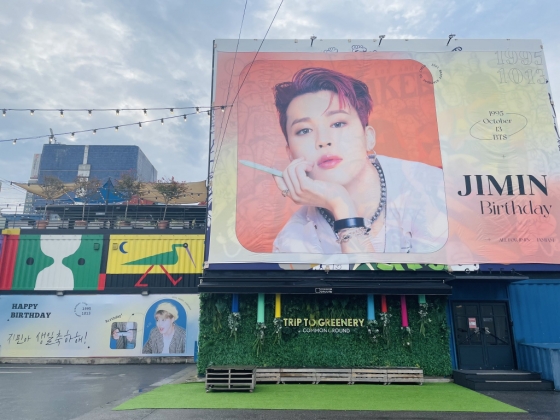 지민의 국내 서포트팀 올포지민(ALLFORJIMIN)이 지민의 27세 생일 축하 서포트로 건대 커먼그라운드 전체 외벽 대형 랩핑을 선사했다.