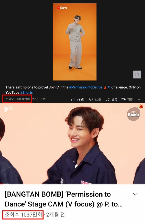 18일 오전 현재 뷔의 개인 챌린지 영상은 848만 뷰를 돌파해 최고 조회수는 물론 '퍼미션 투 댄스' 챌린지 영상 중 가장 많은 154만개의 '좋아요'를 받으며 뜨거운 인기를 입증하고 있다.