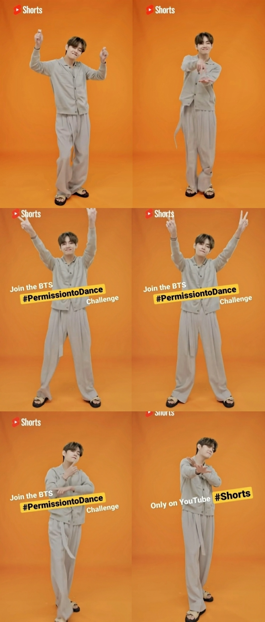흥에 넘친 춤을 추던 뷔는 'Join the #PermissiontoDance Challenge'문구와 함께 화면을 응시하면서 손가락을 턱에 대고 시선을 집중시켜 섹시한 무드를 연출하는 순간, 다시 순식간에 손을 펼치는 귀여운 엔딩 포즈를 선보이며 유끼미남의 표본을 보여줬다.