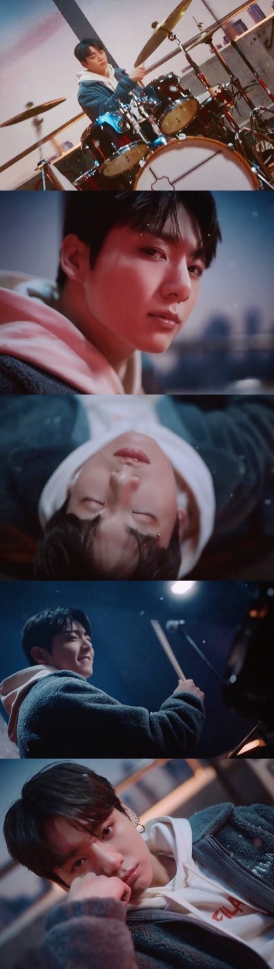 정국은 현란하고 역동적이게 드럼 연주를 하는 '드러머'로 변신한 모습으로 압도적 존재감을 과시해 시선을 강탈했다.