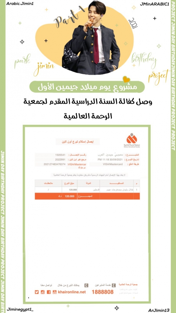 아랍의 지민 팬들도 '우리 아티스트의 따뜻한 생각과 끊임없는 기부를 본받아 '아랍 지민 팬'이라는 이름으로 1년 내내 우수한 팔레스타인 학생을 후원했다'며 장학금 후원 사실을 공개했다.