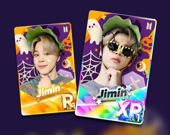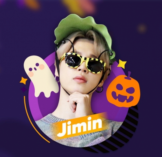 또다른 카드에서는 유령 스티커를 양 볼에 붙이고 깜찍한 미소를 지으며 핼러윈 축제를 즐기는 어린아이같은 순수한 모습을 선보여 지민만의 극과극 반전 매력으로 팬들의 심장을 녹였다.