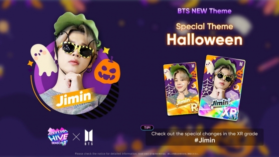 하이브 레이블즈 아티스트의 음악과 IP를 게임으로 즐길 수 있는 모바일 리듬게임 'Rhythm Hive'(리듬하이브)는 지민의 새로운 스페셜 테마 핼러윈(Halloween) XR 카드를 공개했다.