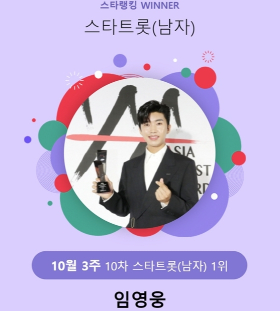 임영웅은 10월 14일 오후 3시 1분부터 10월 21일 오후 3시까지 진행된 스타트롯 남자 랭킹 10월 3주차(10차) 투표에서 24만3533표를 얻어 1위를 차지했다. 임영웅은 스타트롯 남자 랭킹 1차(8월 3주차)부터 10주 연속으로 부동의 1위 자리를 지키며 '영웅시대'를 증명했다.