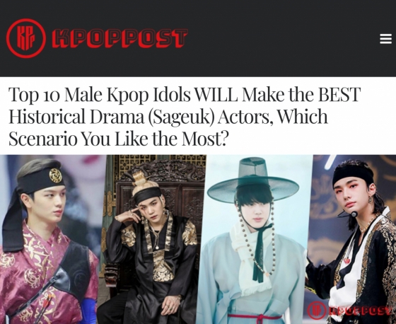 연예 매체 KPOPPOST(케이팝 포스트)는 최근 기사를 통해 '최고의 사극 배우가 될 케이팝 남자아이돌 TOP 10'을 발표했다.