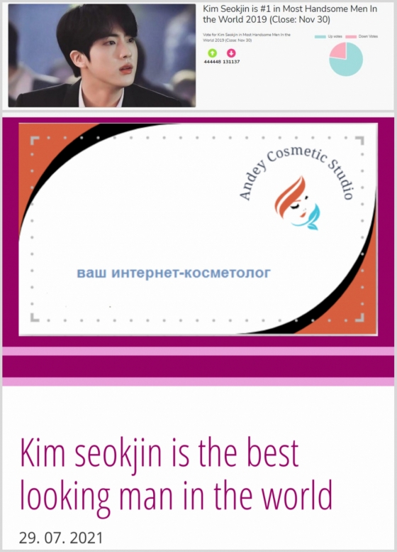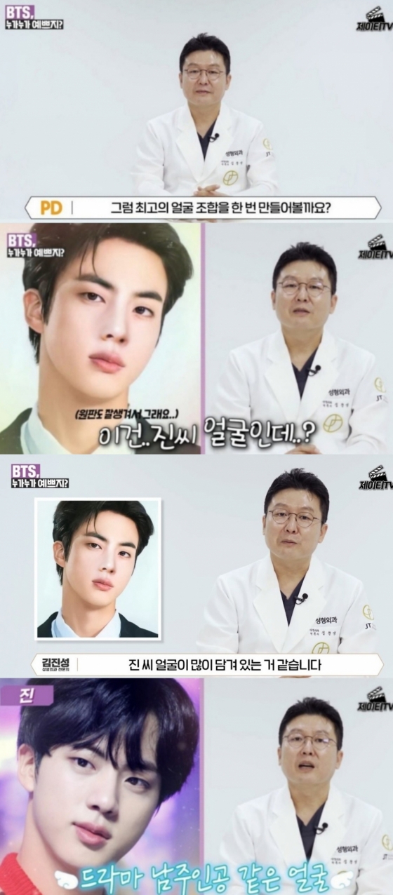 최근에는 성형외과 전문의가 최고의 이상적인 이목구비를 조합했더니 진의 얼굴이 나와 큰 화제를 모으기도 했다. 그는 또 드라마에서도 미남으로 나오는 얼굴이라며 진이 드라마 남주인공 같은 대단한 미모를 가졌다고 평했다.