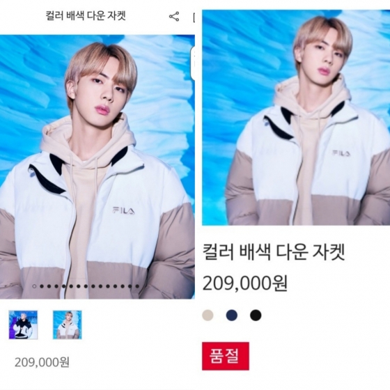 방탄소년단(BTS) 진이 광고에서 입은 다운 재킷이 빠르게 품절 되며 '품절킹' 면모를 빛냈다.