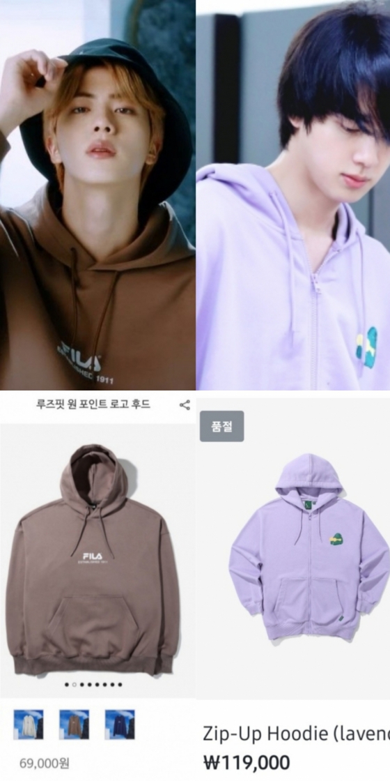 진은 글로벌 슈퍼스타로서 광고나 행사 참석 등 다양한 콘텐츠에서 노출되는데 진이 입거나 착용한 가방 액세서리 신발 등의 제품들이 빠르게 품절로 이어지면서 진이 가지고 있는 브랜드의 힘이 얼마나 강력한지 잘 보여 주고 있다.