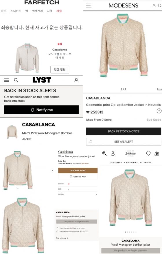 지난 24일 진행된 방탄소년단의 온라인 콘서트 'BTS PERMISSION TO DANCE ON STAGE'에서 뷔가 입었던 카사블랑카(Casablanca)의 'Wool Monogram Bomber Jacket pink'은 다양한 사이트에서 품절을 기록했다.