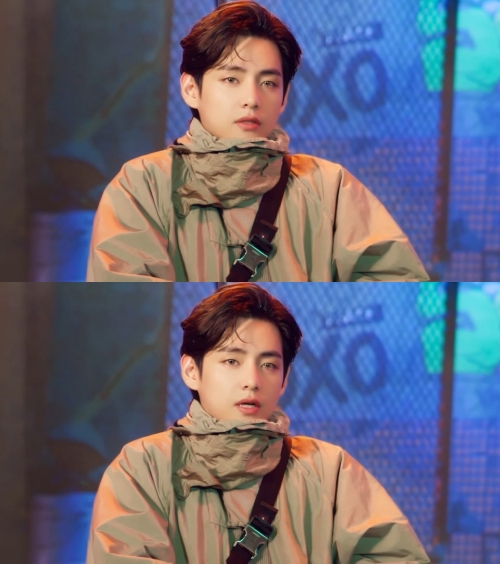 앞머리를 세운 짙은 갈색머리의 뷔는 방호복을 연상시키는 재킷을 입고 반짝이는 눈망울로 청순한 아름다움을 발산하며 등장과 동시에 강하게 시선을 사로잡았다.
