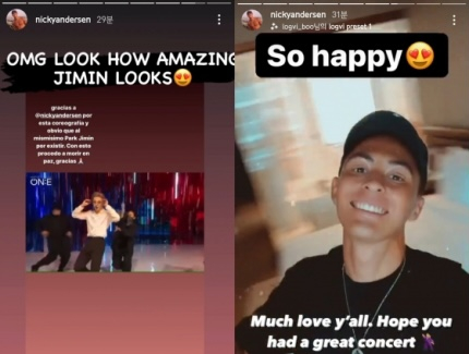 또한 지민의 솔로곡 '필터'의 안무를 담당했던 디즈니 영화 '알라딘'의 안무가이자 '다이너마이트'의 안무를 맡은 세계적 안무가 니키 앤더슨 역시 "어메이징하고 아름다워 감동적이다"라며 지민의 무대를 극찬했다.
